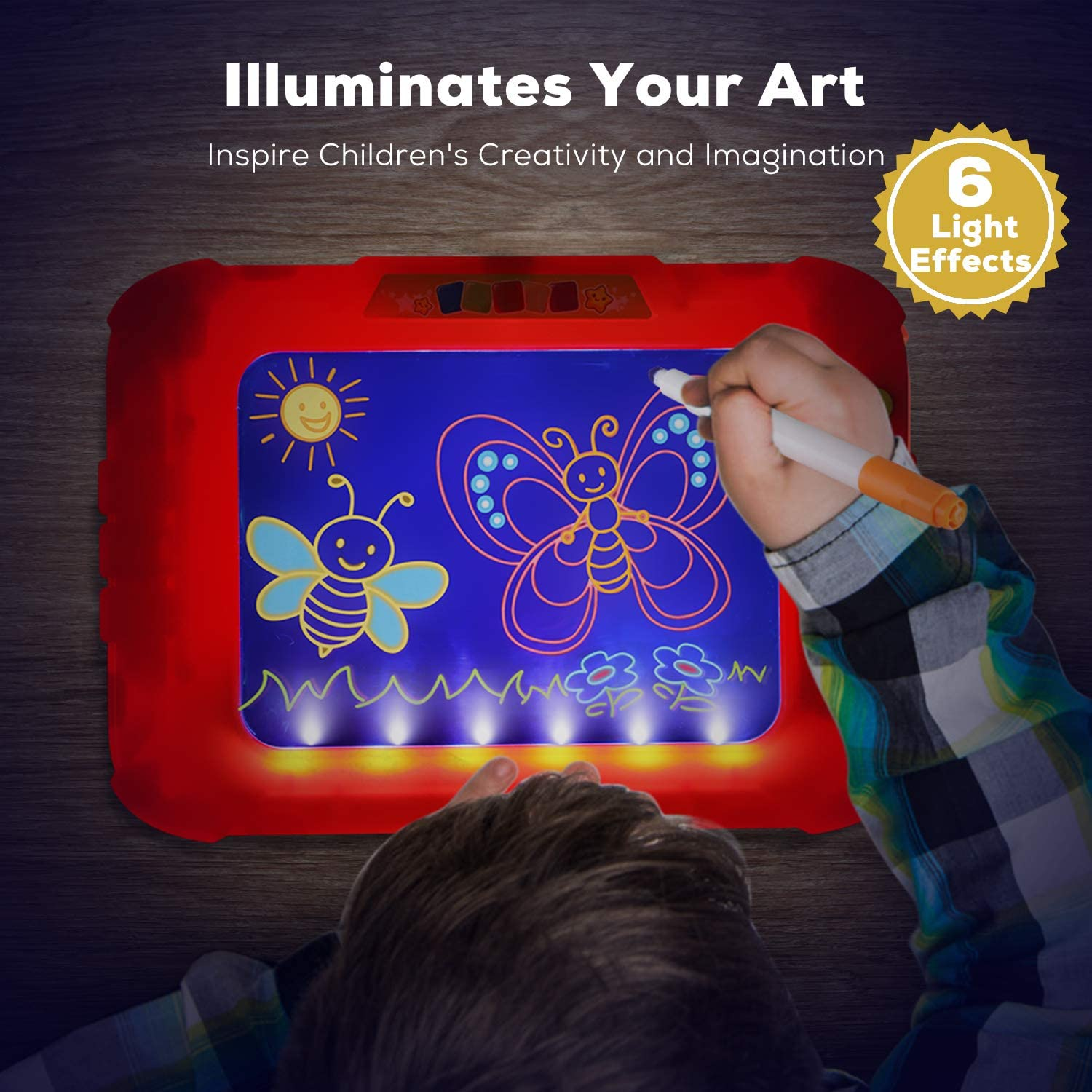Magic Pad Set: donnez vie à votre art avec une lueur portable. Magic Drawing Board est une lueur portable qui illumine votre art d'une simple pression sur un bouton. Essuyez simplement l'écran pour créer à nouveau!