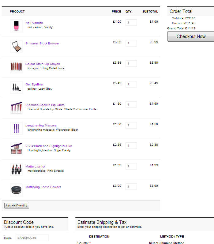 Maquillage mini prix + code 50% de reduc et fdpg dès 10£