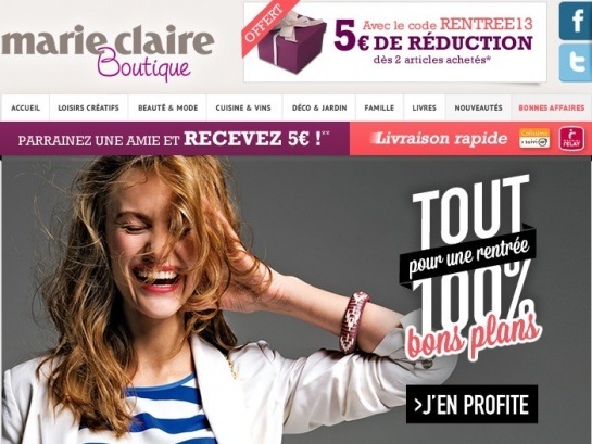 Avec le code RENTREE13, profitez de 5€ de réduction dès 2 articles achetés, sur tout le site Boutique Marie Claire.
