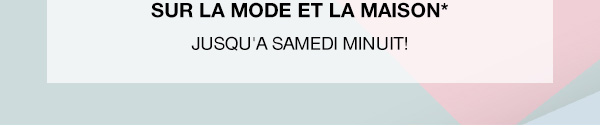 Économisez 20% de réduction sur la sélection d'articles suivants : Vêtements, Chaussures, Accessoires et articles de Maison. L’offre est valable du 20.05.16 au 21.05.16 à 23 h 59 sur le site marksandspencer.fr uniquement. Cette promotion ne s'applique pas aux articles soldés. Sous réserve de disponibilité. Voir chaque article concerné pour plus de détails. Offre non cumulable avec toute autre promotion sauf indication contraire. La réduction ne s'applique pas aux frais de livraison. Tout remboursement effectué ne tiendra pas compte de la remise. M&S se réserve le droit de refuser d'appliquer cette offre à quiconque ne respecte pas ces conditions.