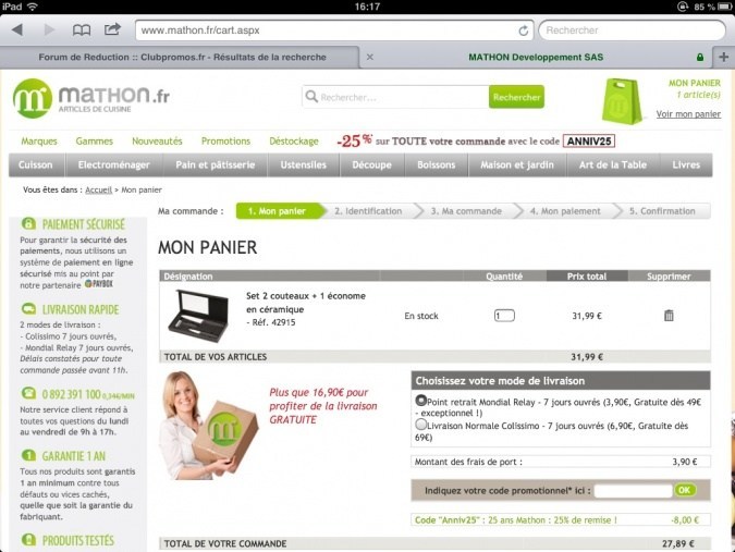 Actuellement sur https://www.mathon.fr/cart.aspx il y a une offre anniversaire avec le code anniv25 vous bénéficiez de 25 % sur toute votre commande et sans minimum et a partir de 49€ la livraison est offerte :)