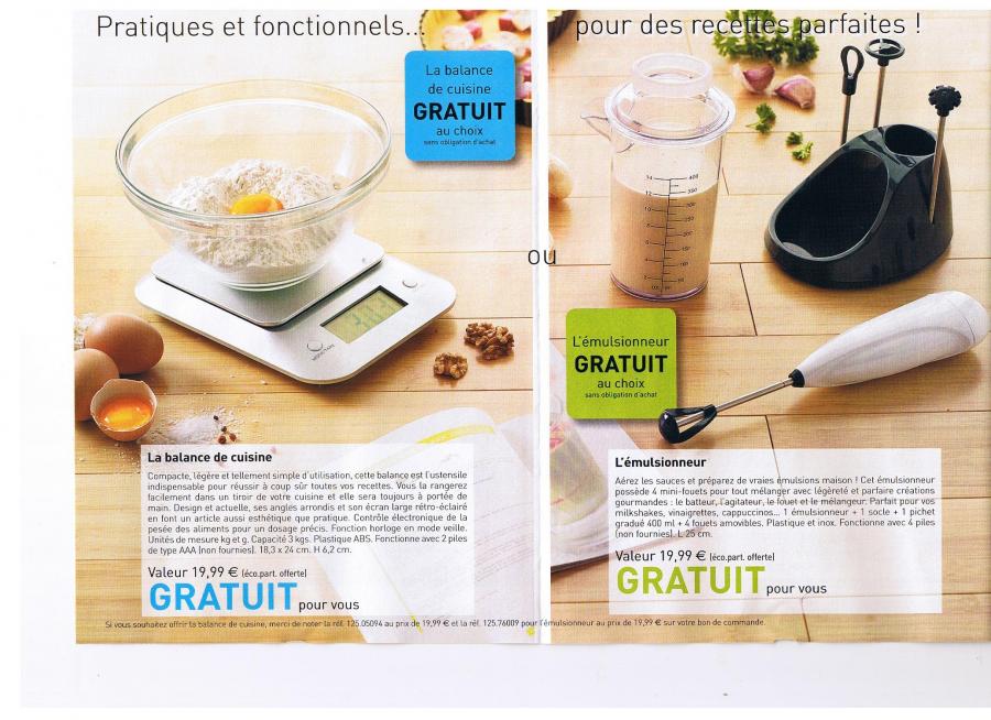 1/ balance de cuisine capacite 3 kgs, plastique ABS, fct horloge en mode veille, fonctionne avec 2 piles AAA (non fournies) 18.3 X 24 cm H6.2 cm Inscription Mathon dessus