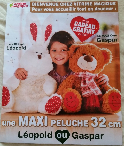 Une maxi peluche 32cm offerte le lapin Léopold ou l'ours Gaspar