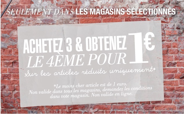 Pour ceux qui veulent acheter en magasin Mexx :arrow: 3 achetés le 4ème à 1€