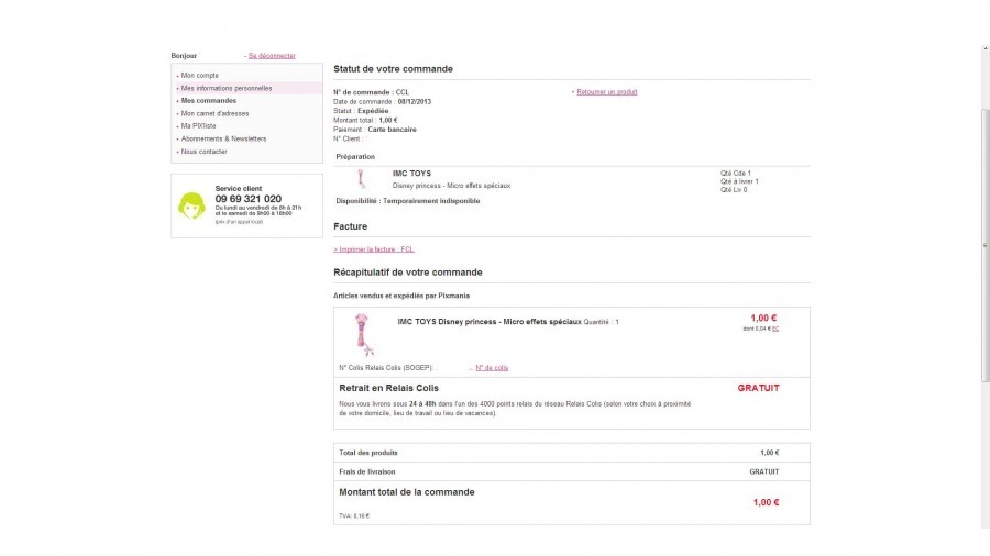 peux-tu me dire ce qui est noté sur le site dans ton compte?Je me suis crée un compte vite fait et mon email est faux donc impossible d'avoir des nouvelles(mis gmail au lieu de yahoo!pff!J'ai recu un sms, mon colis est arrive dans le relais colis