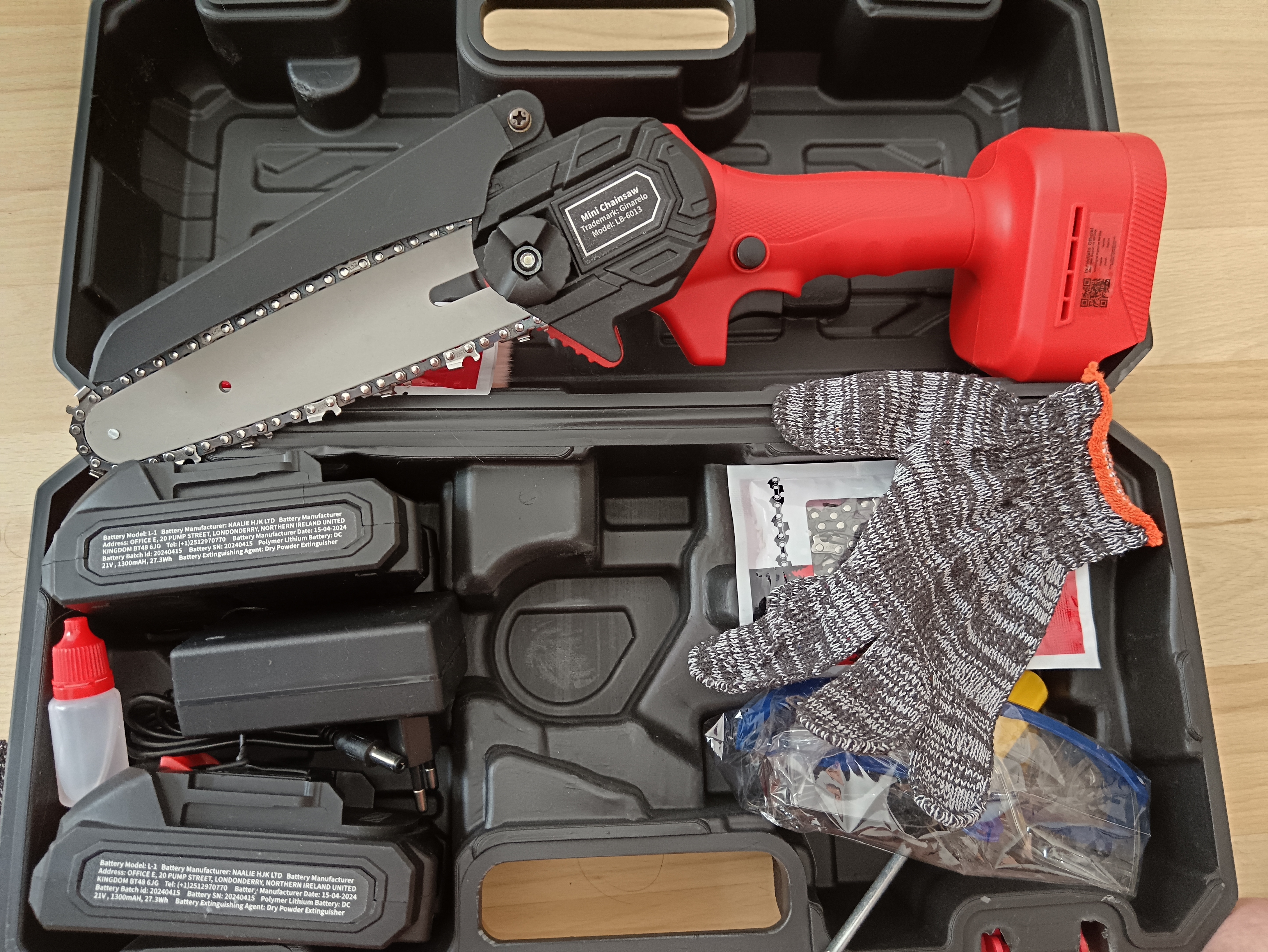 Le kit complet inclut tout ce qu'il vous faut : 1 mallette de transport, 1 chargeur, 3 chaînes, 1 paire de gants, 1 paire de lunettes de sécurité, et bien plus. Optez pour cette tronçonneuse électrique légère et performante pour tous vos travaux de coupe à domicile ou en extérieur.