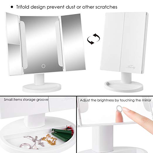 - ✔Écran tactile - Le miroir de maquillage dans la partie centrale du point de contact, intégré 36 lampes LED avec boutons ON / OFF, vous pouvez voir votre apparence dans les zones sombres. Tenez les boutons sur le devant avec vos doigts pour assombrir ou éclaircir la LED. Vous pouvez facilement régler la luminosité.
