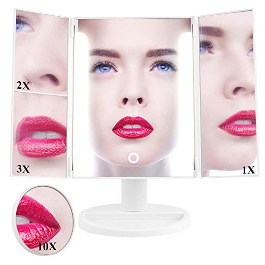 - ✔Visibilité exceptionnelle - Un miroir central et deux miroirs latéraux vous offrent une vue panoramique parfaite de votre visage, grossissement 10X 1X 2X 3X convient à tous les détails des cheveux et le maquillage.