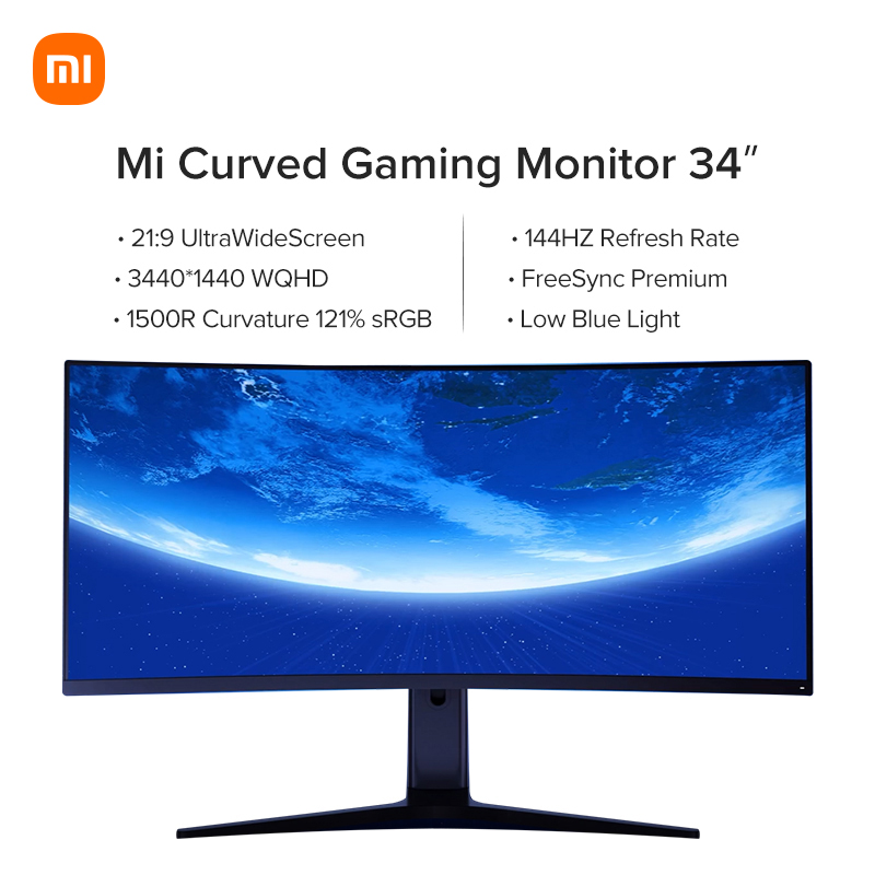 Xiaomi Curved Gaming monitor 34'' 1500R Curvature 121%RGB 144Hz Refresh Rate UltraWide Screen 21:9 Premium PS4 E-sports Desktop