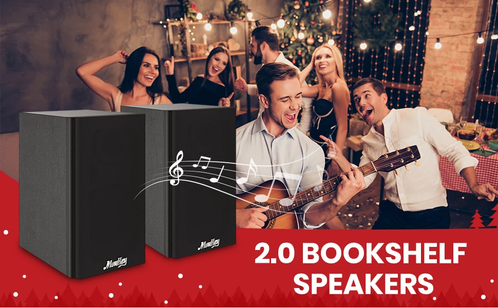 GO Moukey Bookshelf Speakers 100 Watts Peak Power Home Theater Passive Speakers, 5.25-Inch Wooden Enclosure Stereo Speaker