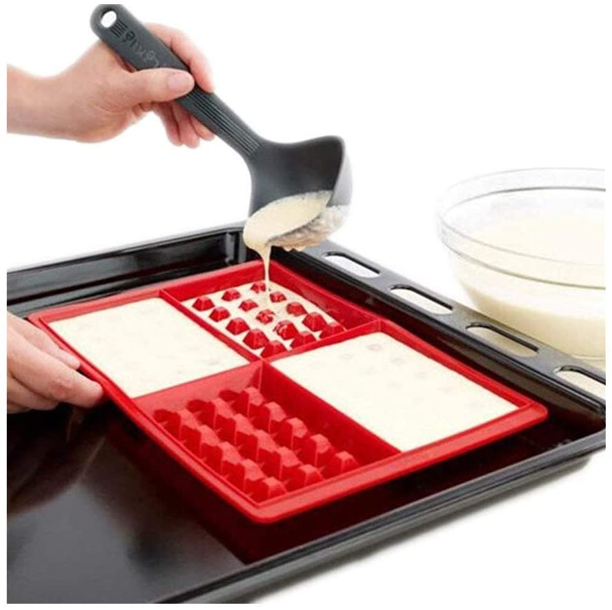 • La surface lisse libérera facilement les aliments, ce moule flexible en silicone est fantastique pour les gaufres, les biscuits, le pain, les gâteaux, les pizzas, le chocolat