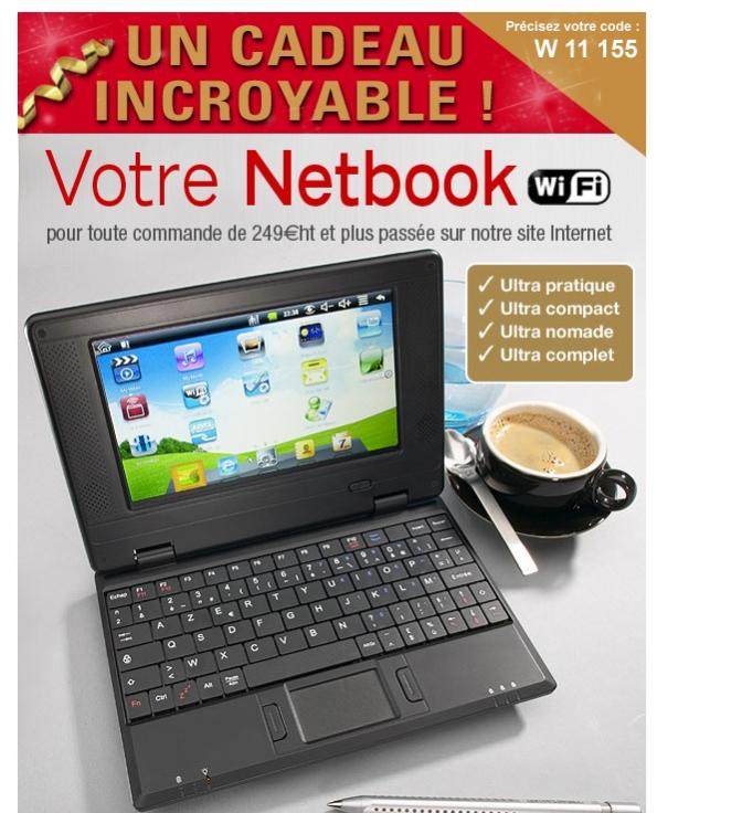 Offre valable pour toute commande minimum de 249 euros ht passée sur notre site internet jusqu'au 10 Décembre 2010,