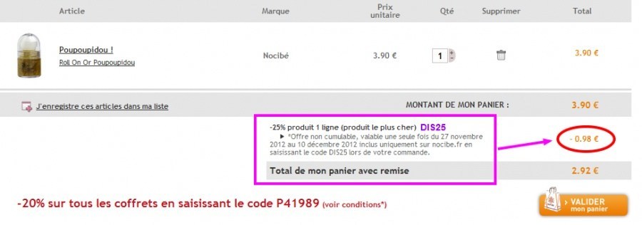 1- le code de Poseidon qui offre - 25% sur un article ( le plus cher)