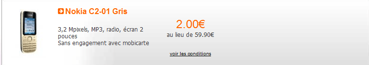 Nokia C2-01 à 2€ au lieu de 59.90€ en vente flash orange.