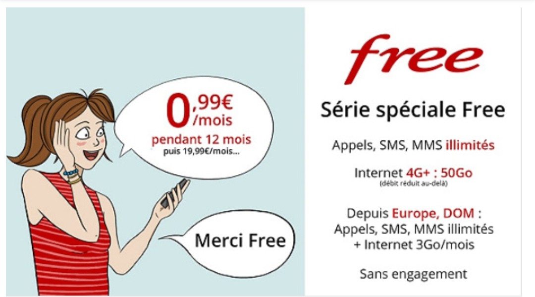 0,99€ / mois pendant 12 mois, puis Forfait Free à 19,99€/mois