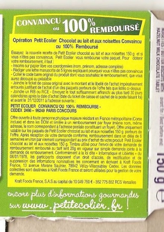 paquet "petit écolier nouvelle recette plus de noisette" 100% remboursé