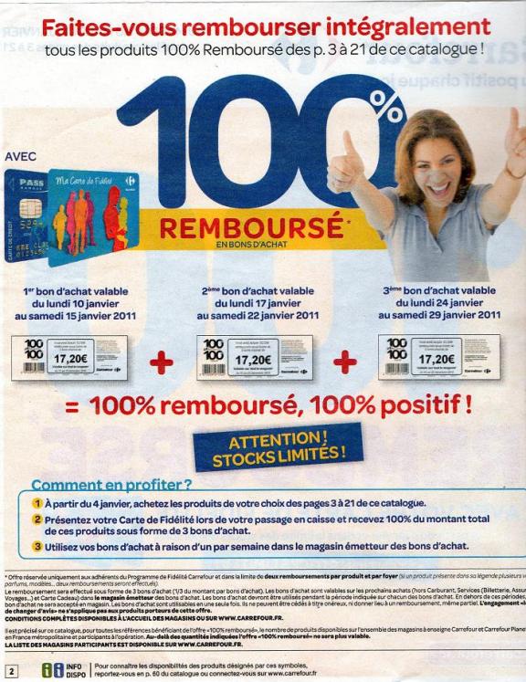 une nouvellle offre 100% remboursé en 3 bons du 4 au 11 janvier 2011