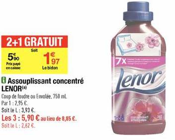 misscarla Habitué 8 Novembre 2009 17 067 404 8 810 42 perpignan 23 Mars 2013 #1 fini 5,90€- 3x1,57€ sur bon-de-reduction | enviedeplus soit 1,19€. les 3 bidons Fichiers joints lénor.jpg 13.8 KB · Affichages: 544 Dernière édition par un modérateur: 13 Août 2013