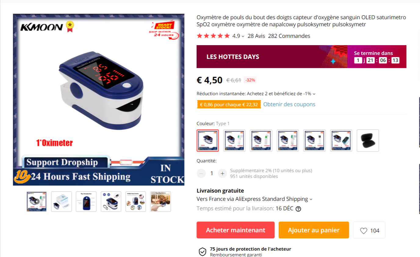 Oxymètre de pouls KKMOON à 4,50 € & livraison gratuite