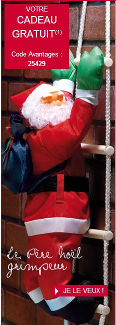 (1) PERE NOEL HAUTEUR 47 cm DECORATIF A SUSPENDRE- MONTANT A UNE ECHELLE (hauteur totale 96 cm) EN CORDE (polyester coloris blanc) AVEC 4 BARREAUX EN PS COLORIS BEIGE- IL EST REVETU DU COSTUME TRADITIONNEL COLORIS ROUGE ET BLANC EN POLYESTER-COLORIS NOIR-GANT COLORIS VERT-ET CEINTURE EN PS COLORIS NOIR AVEC BOUCLE EN PS COLORIS DORE- IL PORTE SUR SON DOS UNE HOTTE EN POLYESTER COLORIS VERT FERME PAR DES RUBANS DE SATIN COLORIS VERT ET ROUGE- REMBOURRAGE DU PERE NOEL ET DE LA HOTTE EN 100% POLYESTER