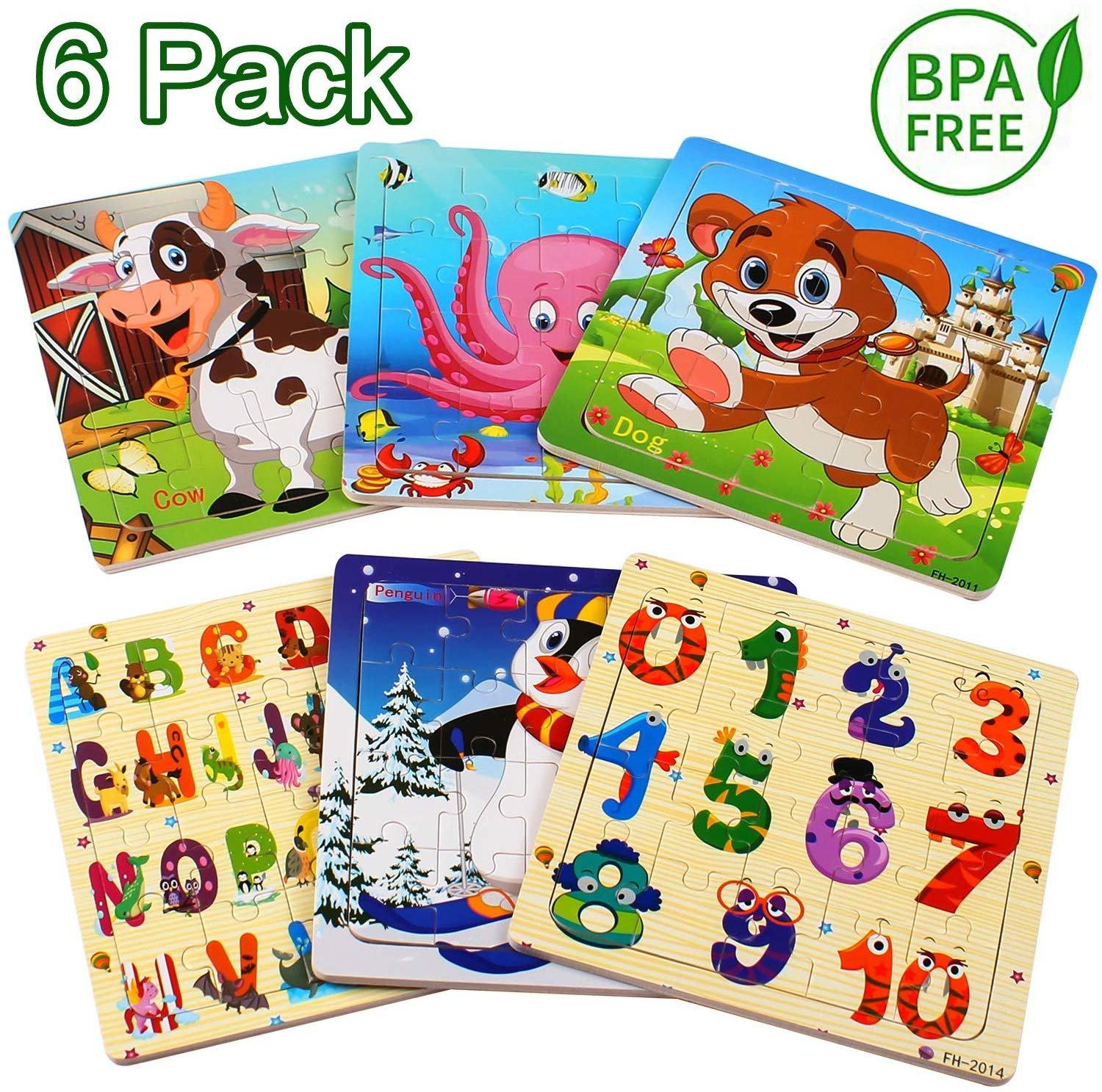 • ❤ 【ADORABLE ANIMAL PUZZLE ENSEMBLE】Ensemble de 6 puzzles en bois pour tout-petits, lettres, chiffres, vaches, chiots, calamars et manchots sont les enfants préférés des tout-petits. Couleur vive et taille parfaite (20 pièces chacune) pour enfant en bas âge, facile à transporter et comme jeu de voyage.