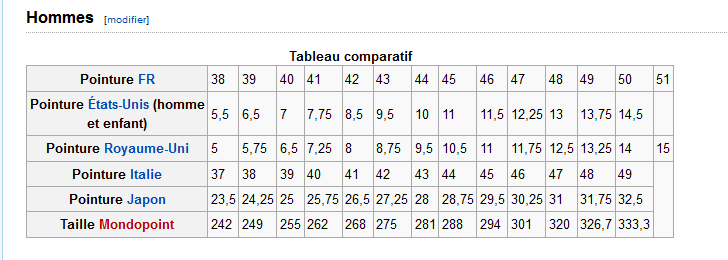 .... pour m'éclairer pour les pointures... sur google y'a plein d'info mais je ne trouve rien qui concorde de plsu sur le site des fois il y a des lettres devant la pointure uk