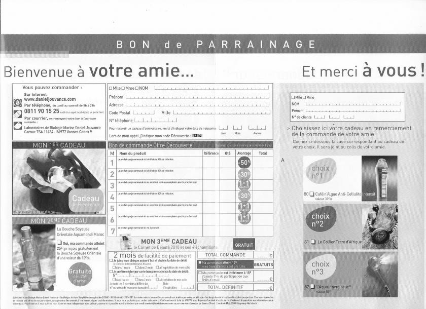 j'ai reçu cette nouvelle offre parrainage avec mon colis : CODE 1314