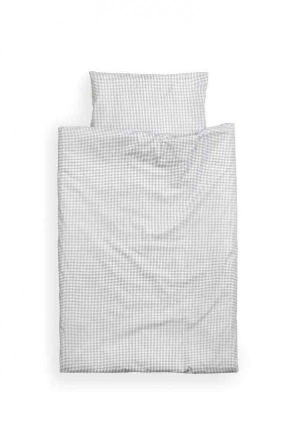 Parure housse de couette en fil de coton biologique fin avec motif imprimé à carreaux. Une taie d'oreiller. Fil 30 g. Densité 144 fils/cm².