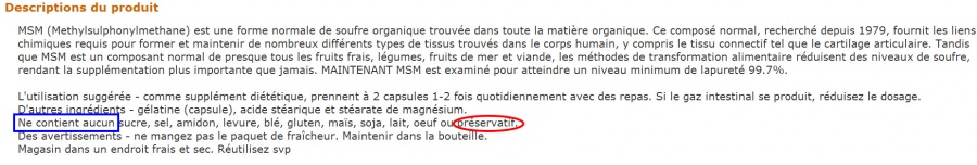 Je cherchais à acheter du MSM sur Amazon, et voila que je tombe sur cette description de produit.