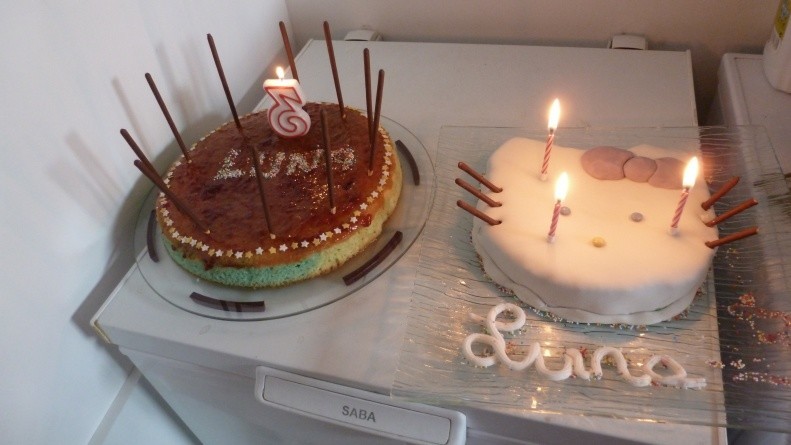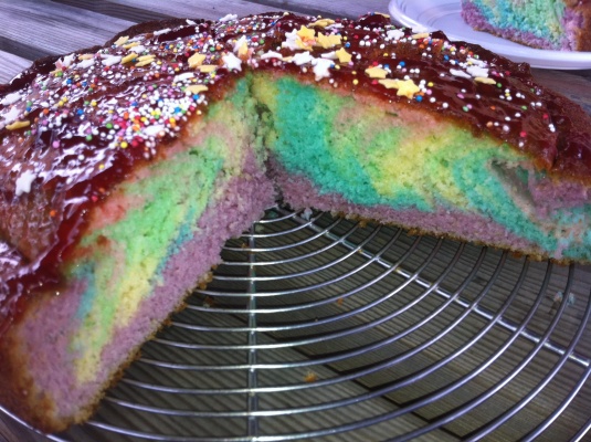 Ils sont superbes vos gateaux J apporte ma contibution Le 1 er c est un rainbow mais pas cake lol Le 2eme gateau yaourt/nutellat PAS hello kitty