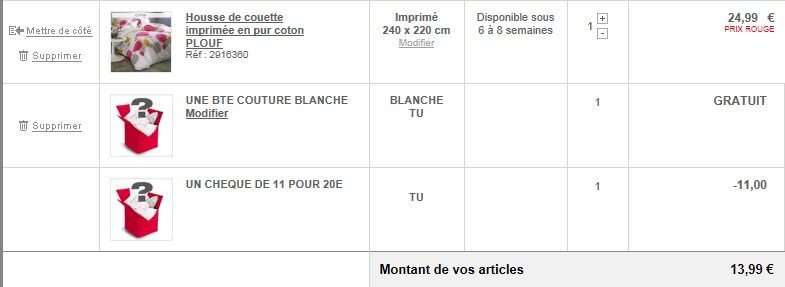 pour vos réponses J'ai testé sur certain prix rouges du cata A/H avec 1 seul article dans le panier à plus de 20€ mais ça passe pas, donc ça ne passe pas forcément sur tous les prix rouges si j'ai bien compris :icon_rolleyes: