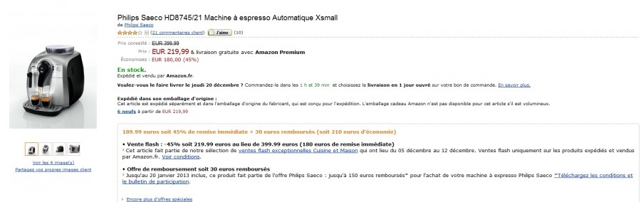189.99 euros soit 45% de remise immédiate + 30 euros remboursés (soit 210 euros d'économie)