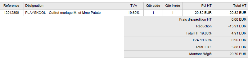 Ma commande est en préparation, je vais voir comment ça bouge si des articles sont annulés sinon ça vaut peut être pas le coup de les récupérer ;) à suivre ...