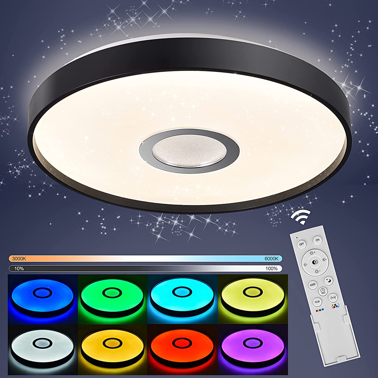 Lie RGB Plafonnier Led Couleur|36W Luminaire Plafonnier Led Salon Cuisine Couloir|Led Plafonnier Dimmable|Plafonnier Chambre Noir Avec Telecommande|Plafonnier Design Ciel étoilé RVB|Lampe Plafond Ø39cm : Amazon.fr: Luminaires et Éclairage