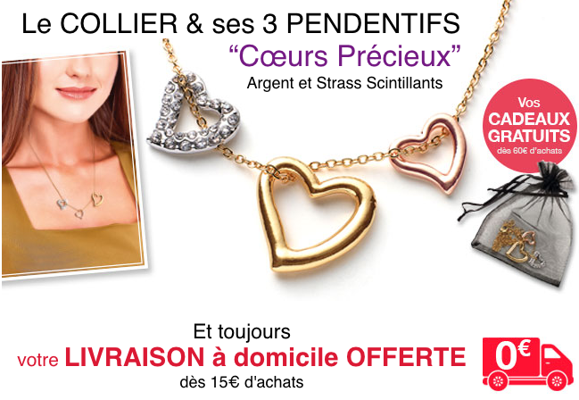 Un collier 3 coeurs en cadeau à partir de 60 € d'achats.