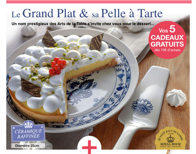 J'ai le code 22114 qui donne aussi en cadeau le plat et la pelle à tarte Royal Boch dès le premier article commandé ainsi que le collier et ses 3 pendentifs " Coeurs Précieux " dès 55 euros d'achats + frais de port gratuit dès 60 euros d'achats. ?
