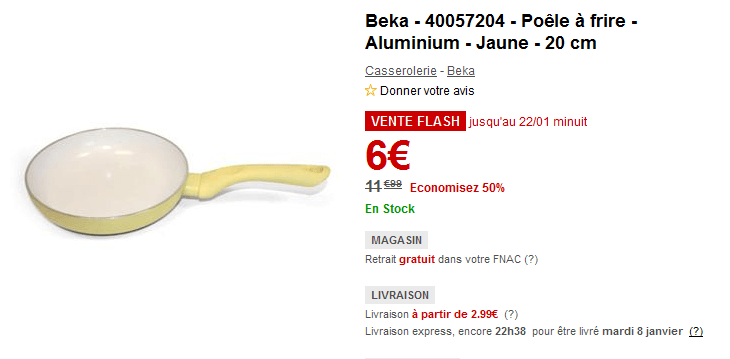 Lien : Beka - 40057204 - Poêle à frire - Aluminium - Jaune - 20 cm - Fnac.com - Casserolerie
