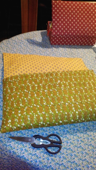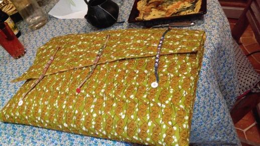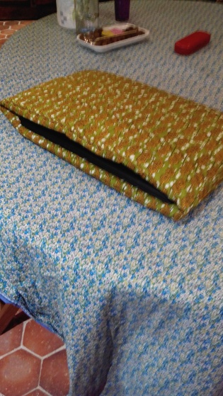 Je m'apprête à confectionner une housse de PC en tissu batik matelassé.