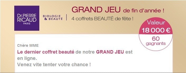PR Grand Jeu de fin d'année pour gagner des coffrets beauté