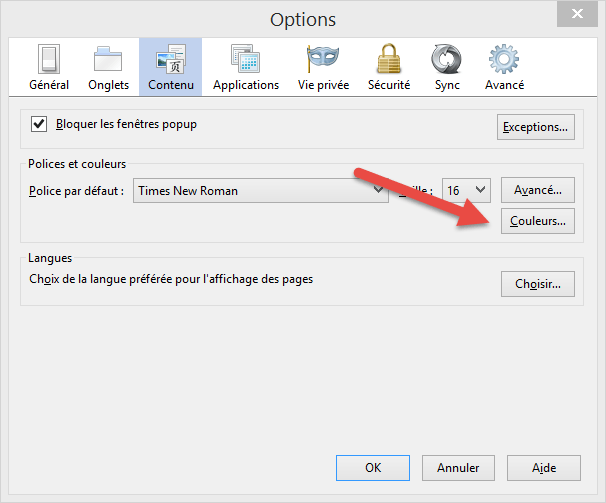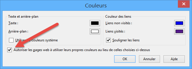La case "Permettre aux pages de choisir leurs propres couleurs" avait été décochée.