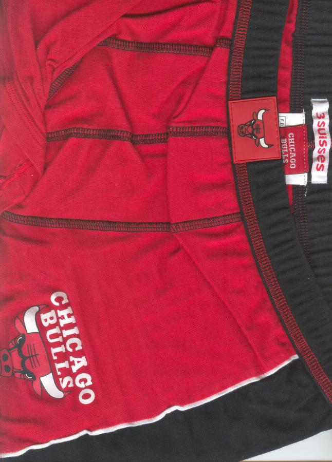 j'ai acheter le boxer chicago bulls couleur rouge+ noir ( ne correspond pas a l'image et il n'est pas licencier chicago bulls ou nba il est licencier a leur marque ) et et les 4 caleçon 1 bouton de chez 3 suisses couleur vif chez eux made in china le logo étiqueter 3suisse et devant les étiquette de la taille et autre nul et naz je vais vous mettre les photo dans les heure qui arrive.