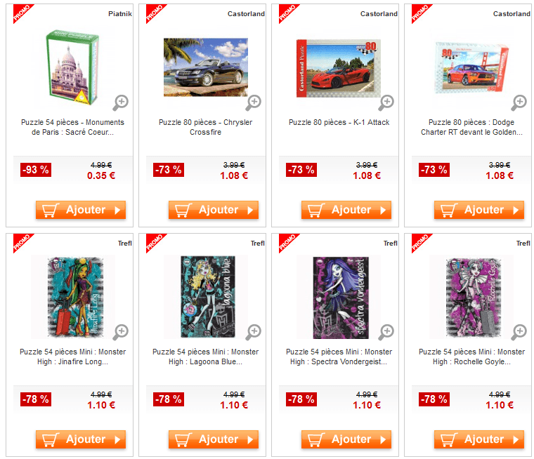 Il y a plein de petits prix sur des Puzzles sur Rue des Puzzles, dont certaines débutent même à 0.35€