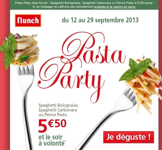 Qui aime les pates ? Flunch Pasta Party à volonté dès 5.50€