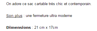 @Sonia : toi qui aimes les sacs cartable, ici, à 16.07€