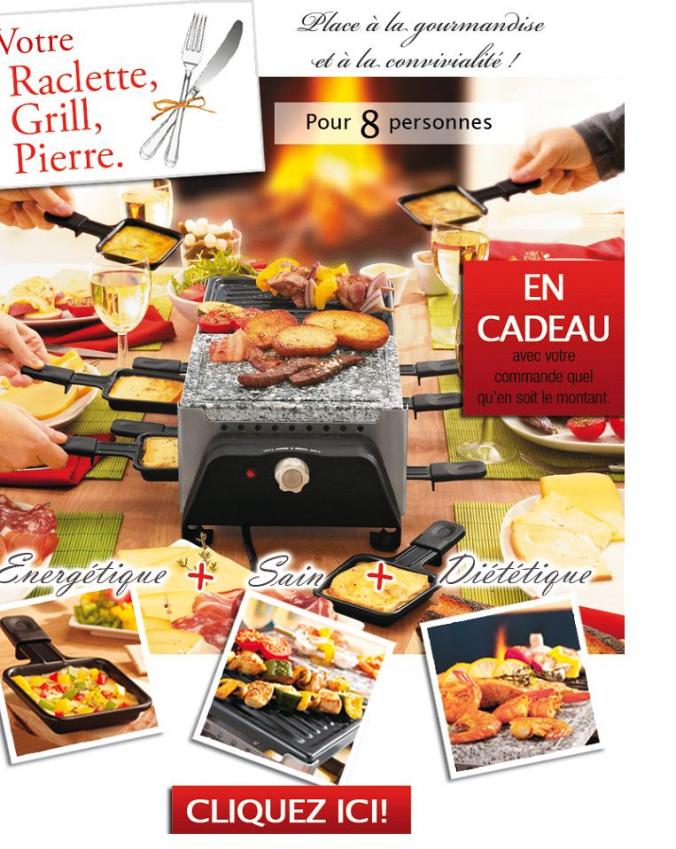 reçu mail cadeau Raclette, grill, pierre pour toute commande quel qu'en soit le montant mais aucun code indiqué ni validité (oubli ?).
