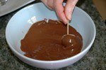 Former ensuite des petites boules à l'aide d'une cuillère parisienne. Laisser en attente au frigo (ou de nouveau au congélateur pour quelques minutes).