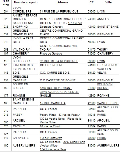 La liste complète des magasins en france :