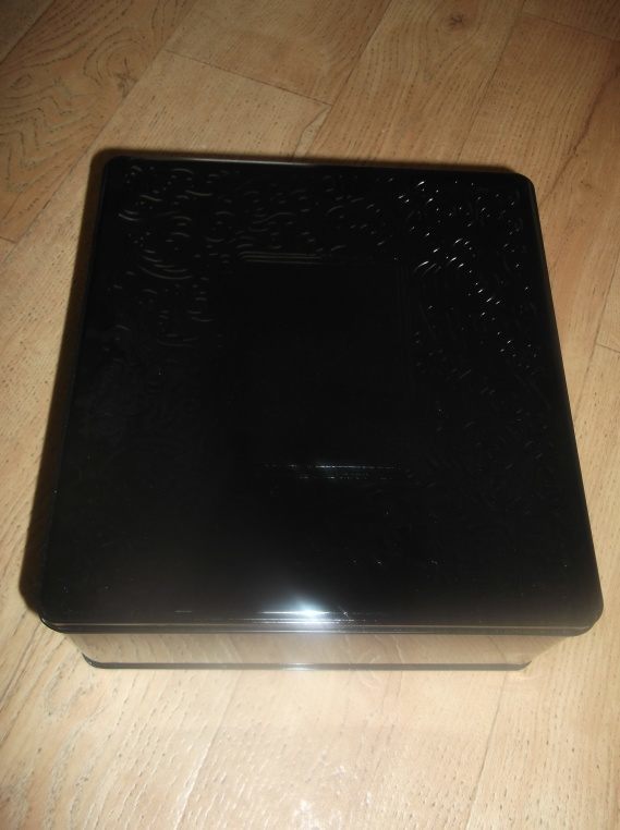 boite a gateau motif baroques en relief elle etait en metal tout simple bombé en noir et vernis pour servir pour stocker les photos