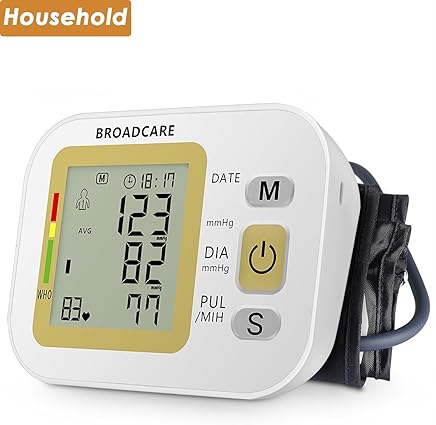 Tensiomètre à bras BROADCARE avec manchon adaptable pour bras de toute taille, deux groupes de mémoire de 99 positions chacun, fonctionnement avec batterie au lithium rechargeable