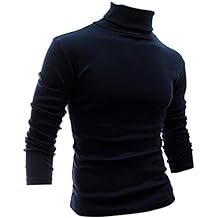 Gleader Mode Hommes Automne Hiver Col Roule Sweater-Shirt Motif solide Pull Bleu L